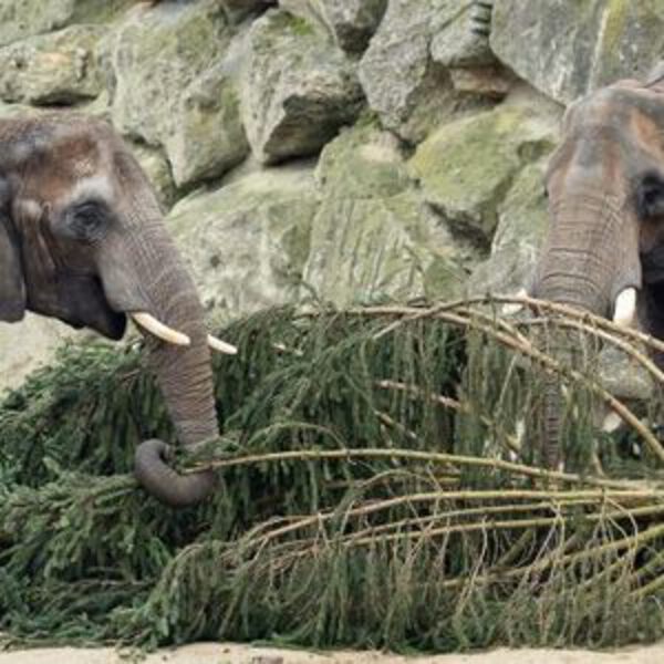 Традиционное новогоднее меню слонов в зоопарке Шёнбрунн: во вторник они снова полакомились остатками рождественской ёлки.