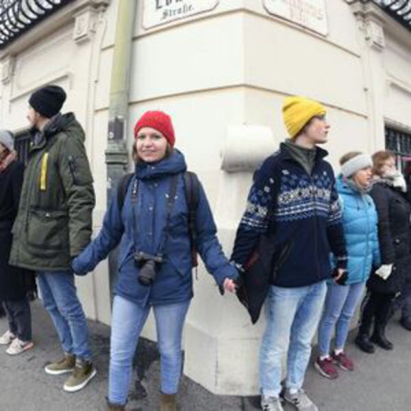 Климатическое движение Fridays For Future сформировало человеческую цепь вокруг Федеральной канцелярии в Вене в 13:00 в пятницу.