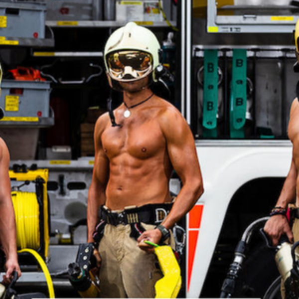 Шесть мужчин! Слегка намазанные маслом и вполне естественные пожарники из профессиональной пожарной команды Линца стоят перед пожарной машиной или на фоне рабочего места и позируют 12 раз - на каждый месяц года.