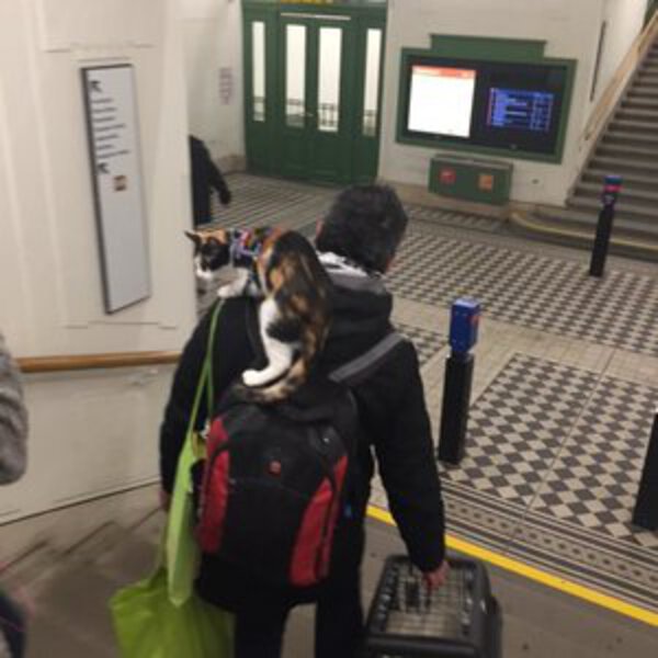 На U3 на станции Вестбанхоф читатель репортер “Heute” Мирко в субботу вечером увидел жителя Вены, который гулял со своей кошкой.