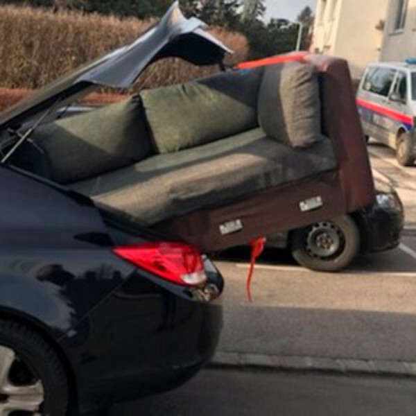 Такие происшествия происходит в Вене нечасто, но в понедельник внимание сотрудников полицейской инспекции на Linzer Straße привлек автомобиль, передвигающийся с широко открытым багажником. Полицейские недоумевали, когда, подъехав ближе, увидели в багажнике огромный диван, почти наполовину выходяший за пределы транспортного средства. Он был закреплен одним ремнем, в связи с этим безопасность дорожного движения была под угрозой. Дальнейшее передвижение легкового автомобиля было запрещено.