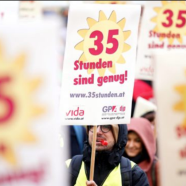 Несмотря на неблагоприятные погодные условия, почти тысяча работников пришли на Stephansplatz в поддержку демонстрации о сокращении рабочего времени с 38 до 35 часов. Рабочие советы, которые выступали на Stephansplatz в Вене, поблагодарили работодателей, которые поддержали запрос.