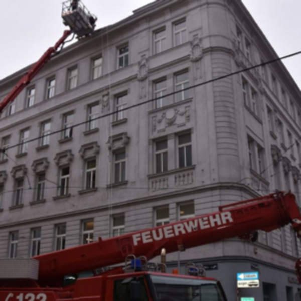 Противопожарная стена на Mariahilfer Gürtel, вероятно, также находилась под угрозой из-за шторма. Жители дома были временно эвакуированы.