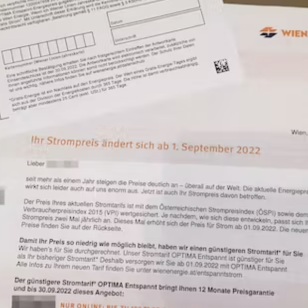 «Ваша цена на электроэнергию изменится с 1 сентября 2022 года» — это письмо, рассылаемое с четверга, вызывает повышение артериального давления у сотен тысяч венских жителей. Как сообщалось, тарифы на электроэнергию и газ в Вене и Нижней Австрии с осени значительно увеличатся. В будущем у провайдеров даже появится возможность два раза в год изменять расценки.