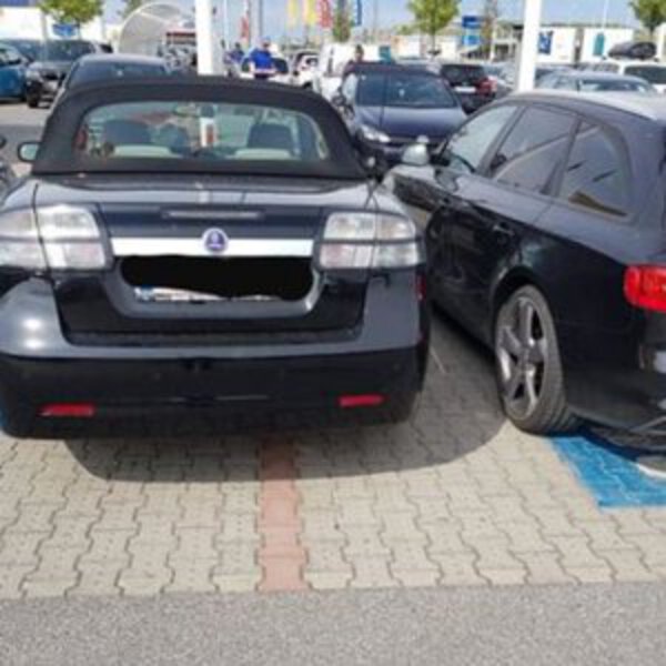 Для семей имеются специально выделенные парковочные места, которые предполагают больше места для выхода пассажиров и для детских колясок. Однако для водителя Saab это не имело значения. Он без проблем припарковал свой автомобиль между двумя уже припаркованными транспортными средствами.