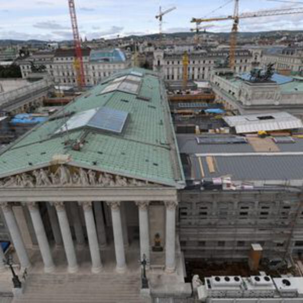 После окончания реставрации здание парламента в Вене лишится своей зеленой медной крыши.