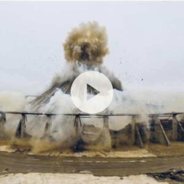 Он был взорван контролируемым образом. Старое здание уже было частично демонтировано. Сейчас “целью уничтожения” стала его крыша. Крыша рухнула, как и планировалось. Но сама конструкция еще не полностью исчезла: центральная башня высотой около 60 метров все еще цела. Вскоре она будет уничтожена с помощью крана-экскаватора.