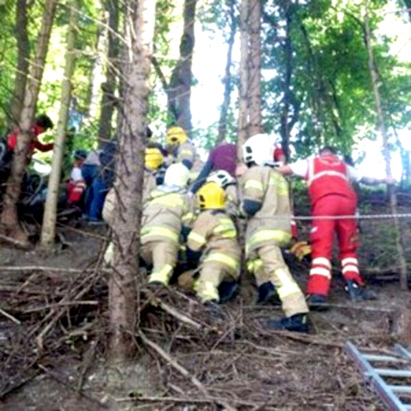 Женщина на инвалидной коляске сорвалась с обрыва. Только, возможно, благодаря деревьям она осталась жива.
