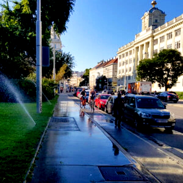 Газонное орошение в городе "мочит" пешеходов